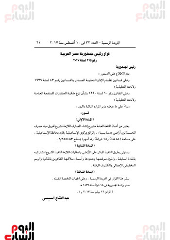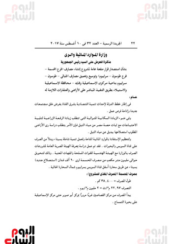 قرار الموارد المائية الصادر بالجريدة الرسمية