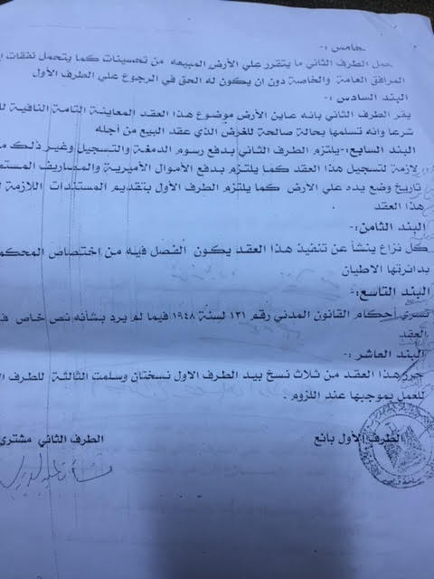 وحصلت"اليوم السابع"، على صورة من عقد بيع ابتدائى صادرة من الهيئة العامة للاصلاح الزراعى (الإدارة المركزية الملكية والحيازة مراقبة البيع والتسجيل)، وتبين من العقد أنه في يوم الأربعاء الموافق 8/1/2011 حرر هذا العقد بين الهيئة العامة للإصلاح الزراعي، ويمثلها قانونا وزير الزراعة واستصلاح الأراضي بصفته رئيس مجلس إدارة الهيئة، وينوب عنه فى التوقيع على هذا العقد (بدون توقيع الطرف الأول) على العقد ولا صفته، ومختوم بخاتم شعار الجمهورية، دون أي توقيعات عليه للطرف البائع.